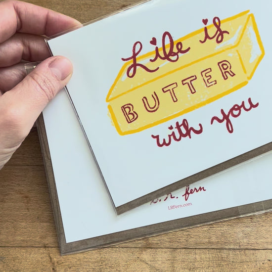 Ya know that special someone who just makes everything... butter!? This punny card was inspired by my love of bread and butter and also, of course, for my husband. But mostly bread and butter...This hand-drawn design is by me, Ashton Greene.